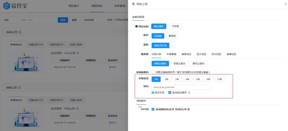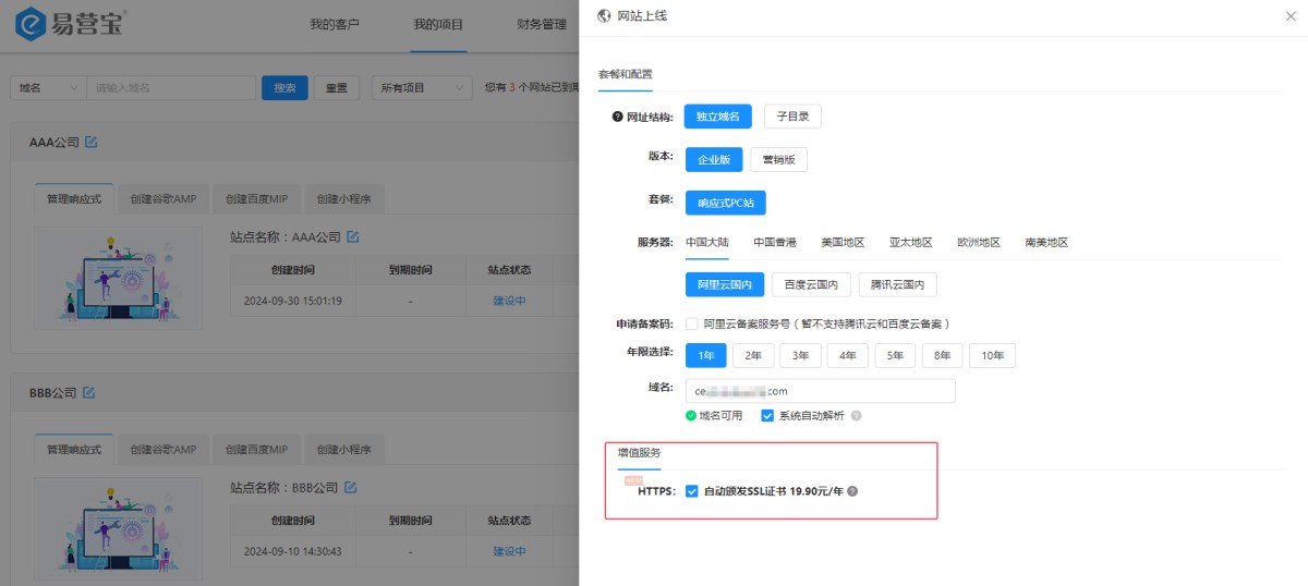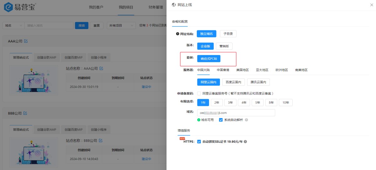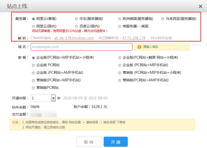 10、上线是选PC+移动套餐的网站,PC站绑定域名选套餐上线后,手机站也是需要点“上线”按钮,绑定手机站域名。不会重复扣费。