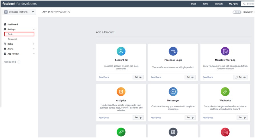 7,点击左侧的Settings,选择点击Basic。
