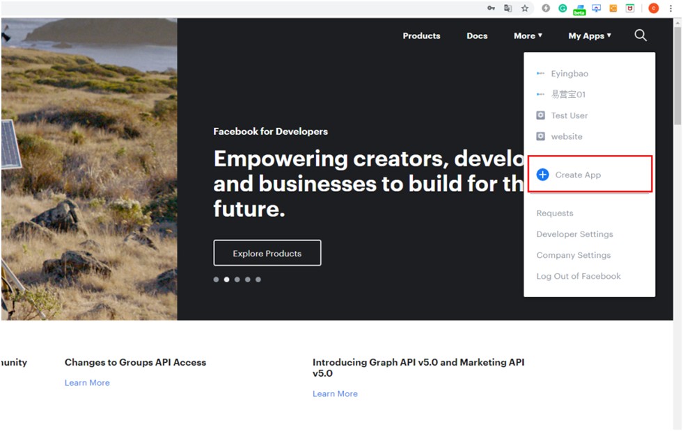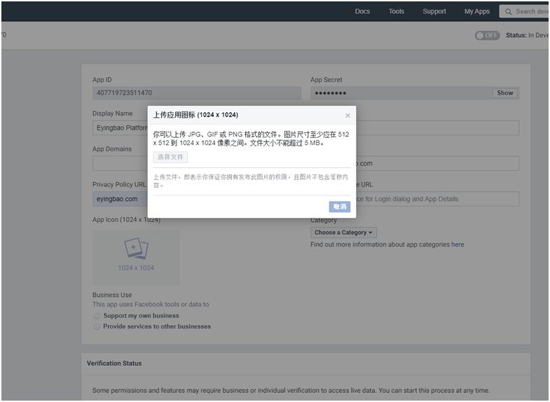 1,登陆https://developers.facebook.com/,点击右上角Log in(登陆)