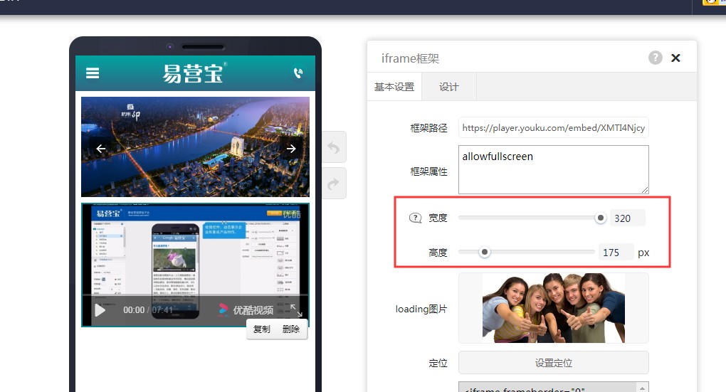 5,调整框架的宽高比例。说明:宽度调整后在编辑页面不直接显示,需要预览看,一般调整高度就可以。设置完成后,在不同大小的手机屏幕上会按照设置的比例展示的。