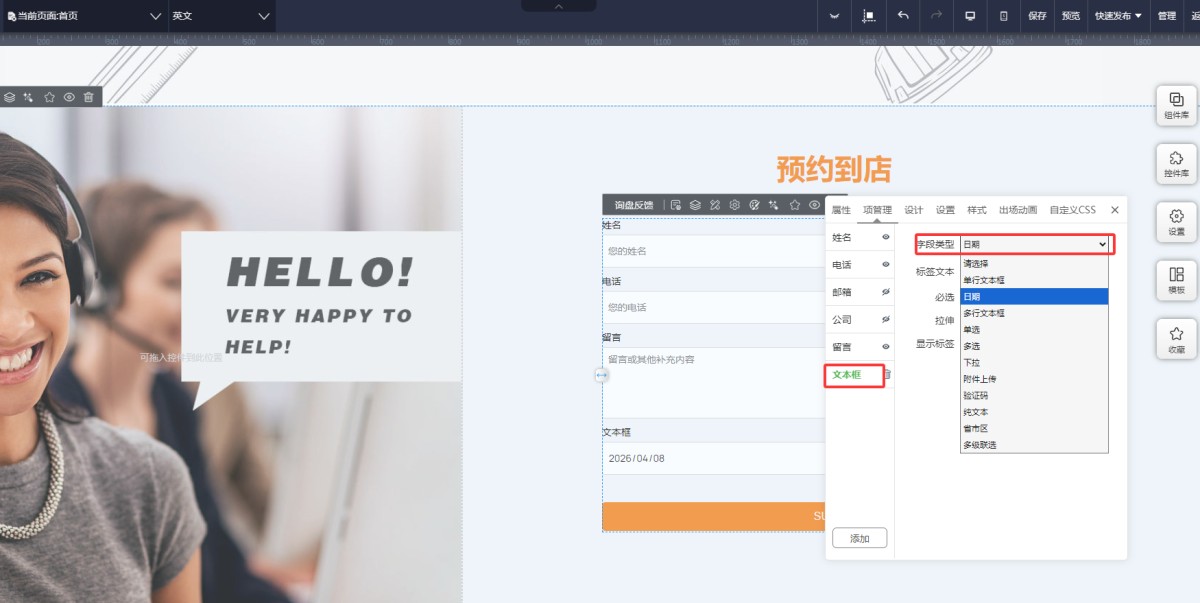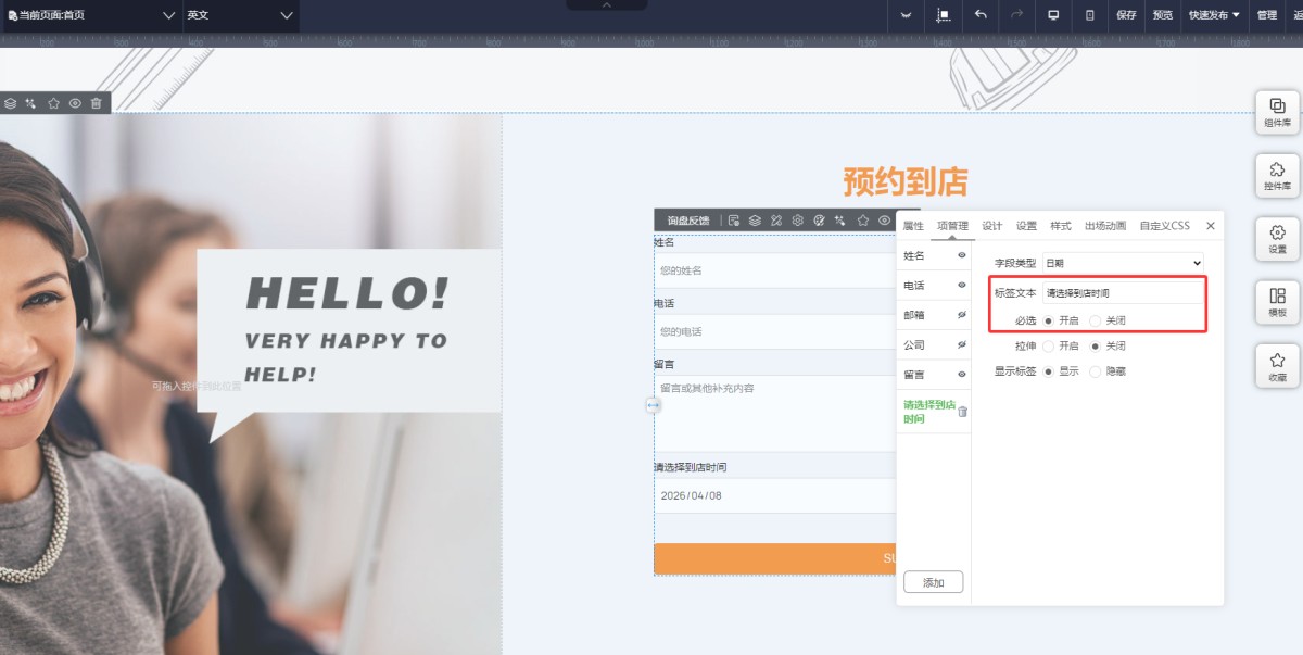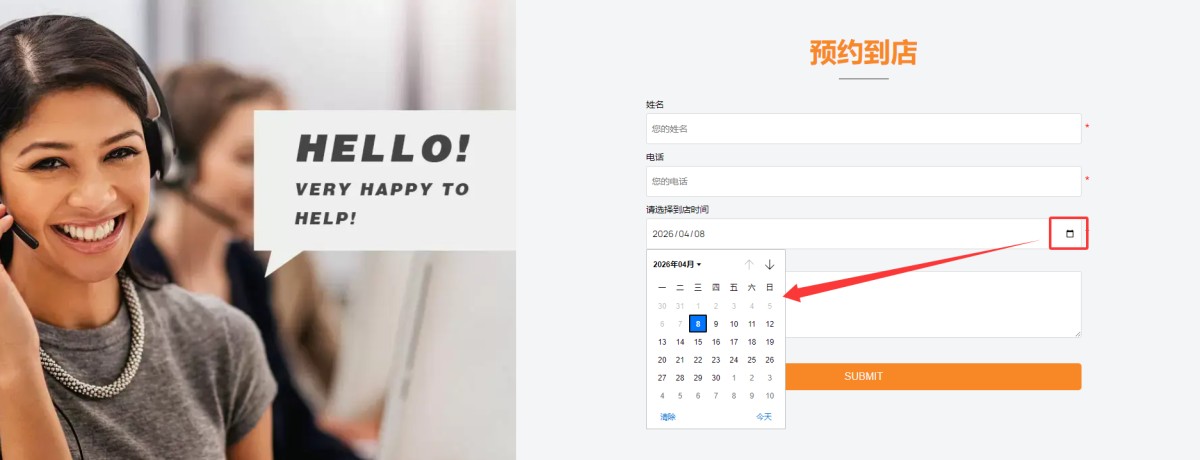 5,预览效果如下。访客点击日期图标时,会展示日期选择器,可以直接选择日期。
