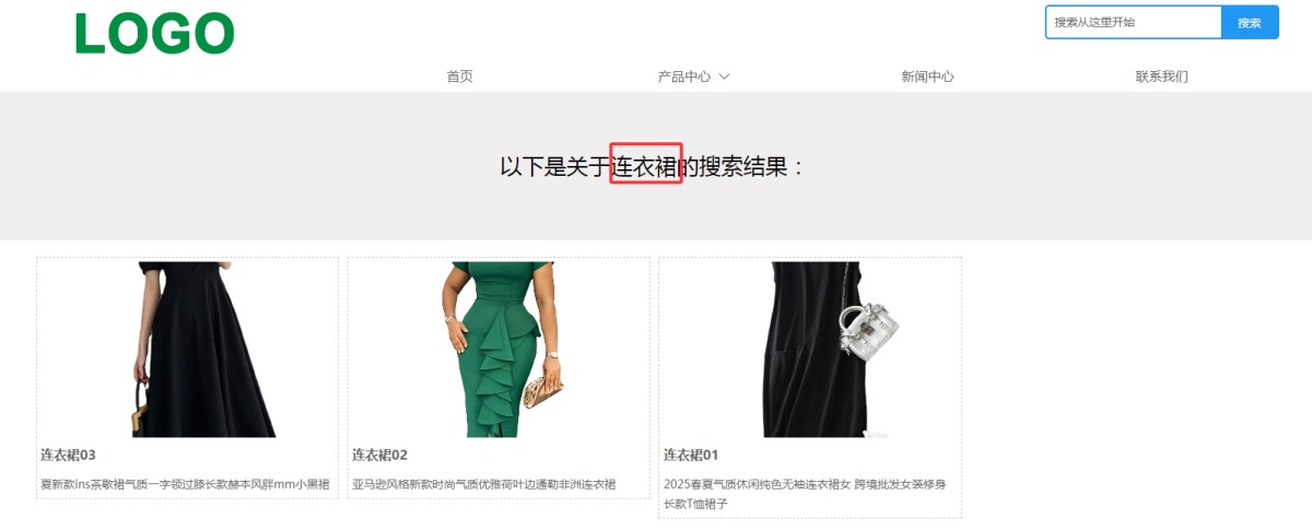 4,这样设置完成后,访客在网站上搜索产品词时,在搜索结果页就会自动匹配展示访客的搜索词。