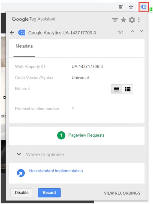 Google Tag assistant: