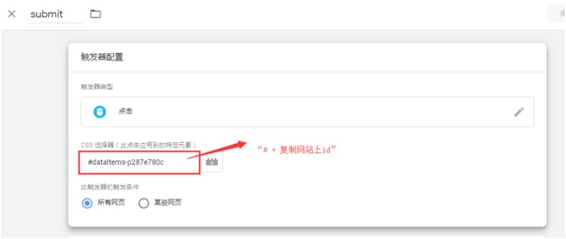 将上一步获取的网站上按钮的ID粘贴到触发器里。