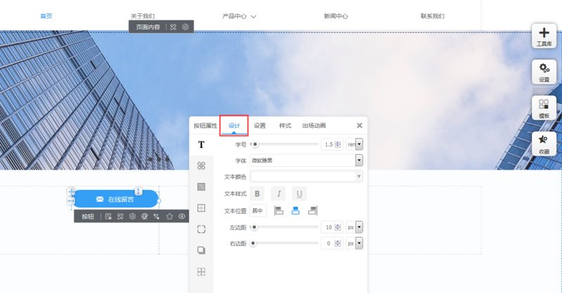 6,在设计里,可以修改文本的字号颜色等属性;修改icon的背景色和大小;设置按钮的边框、圆角、阴影、内外边距。