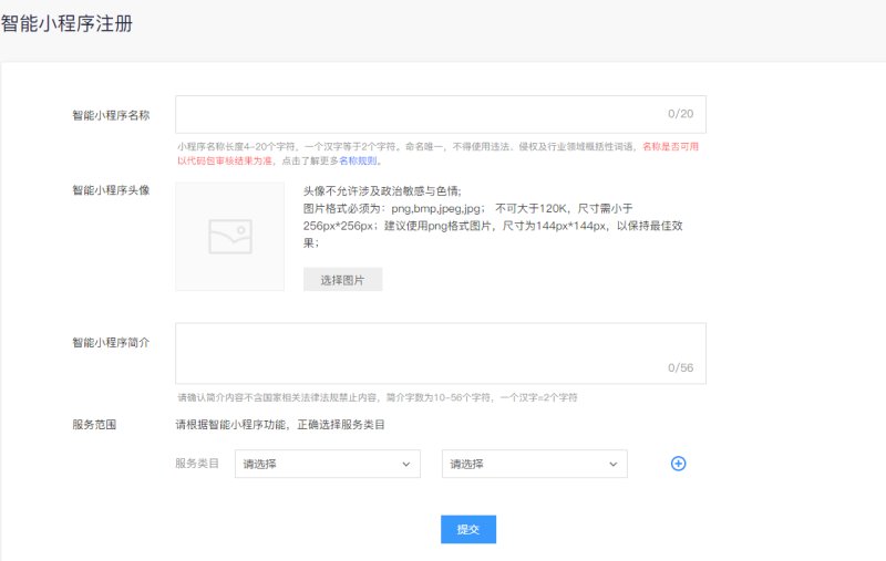 4,按照页面提示填写小程序的基本信息