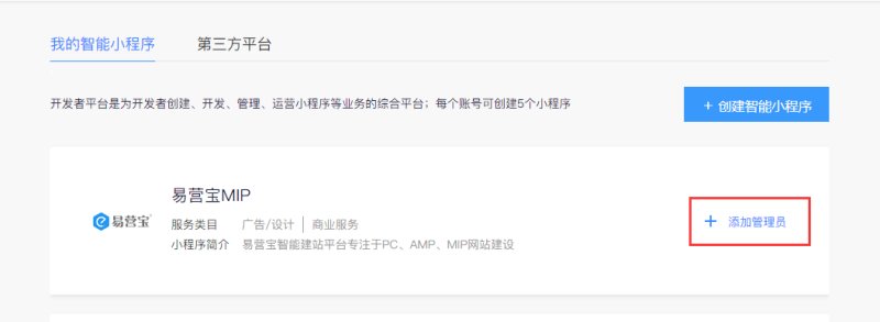 5,创建完成后,点击“添加管理员”,根据提示绑定小程序管理员