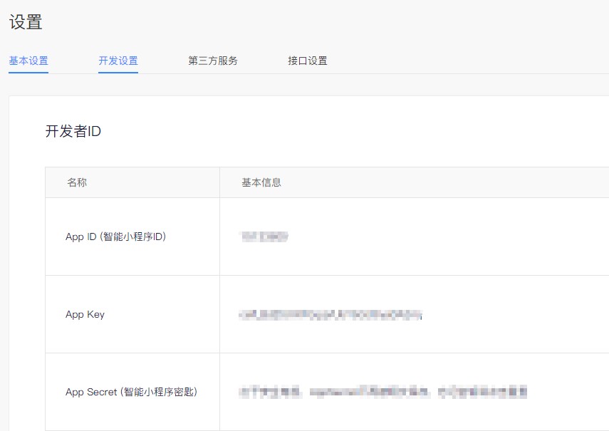7,点击“开发设置”,可查看小程序开发者ID(登录百度小程序开发者工具时需要输入APPID,就是在这里查看)