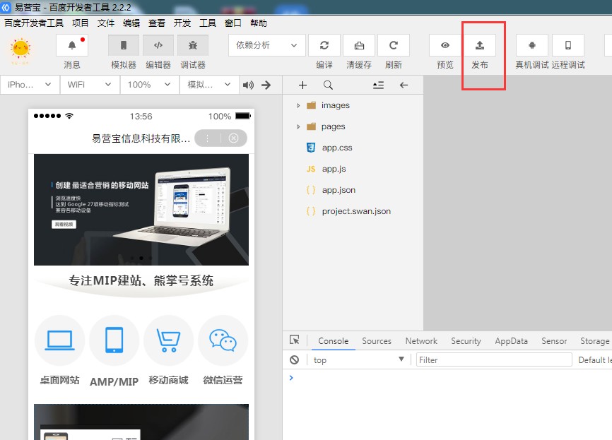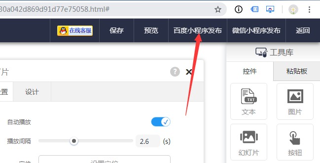 11,页面全部制作完成后,点击右上角的百度小程序发布按钮