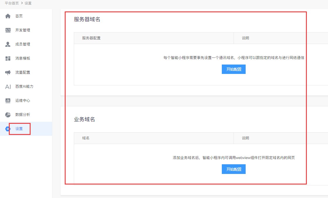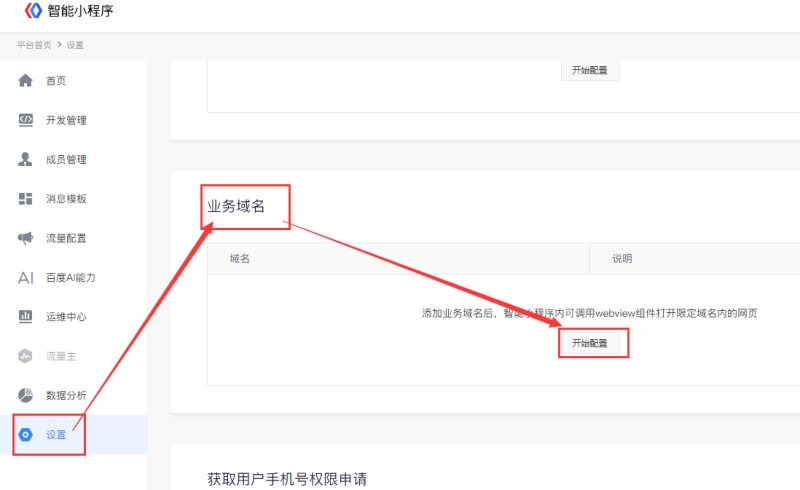 15,在小程序后台,设置-开发设置里配置业务域名和服务器域名