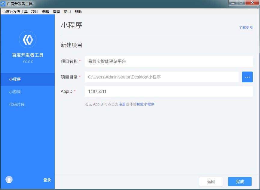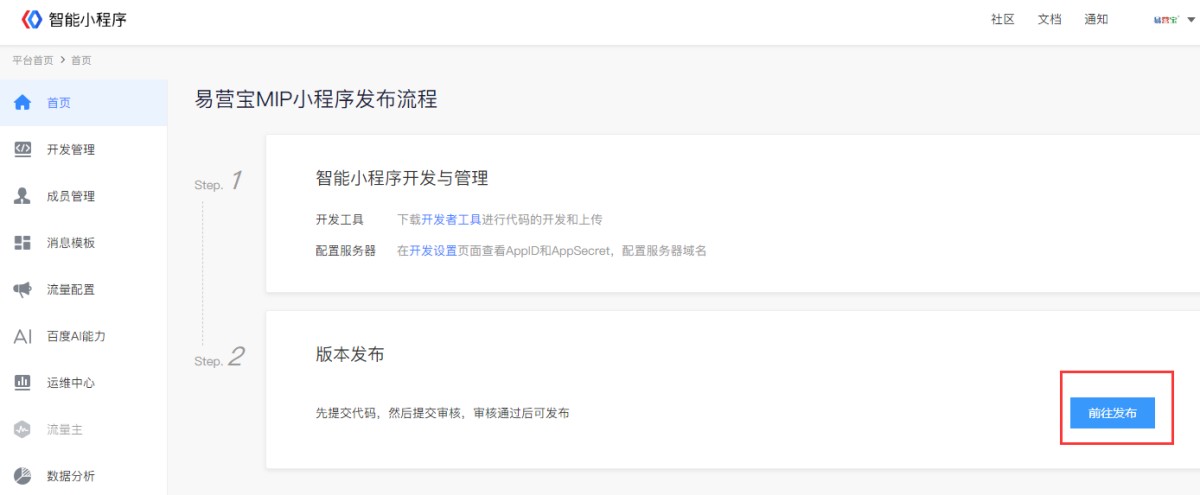 易营宝后台百度小程序发布流程