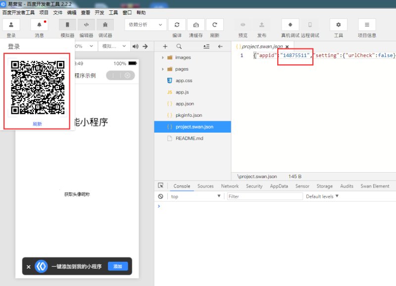 24,小程序的项目成员用百度APP扫码登录,并且检查APPID是否正确。(此时左边是不显示你的小程序页面的)