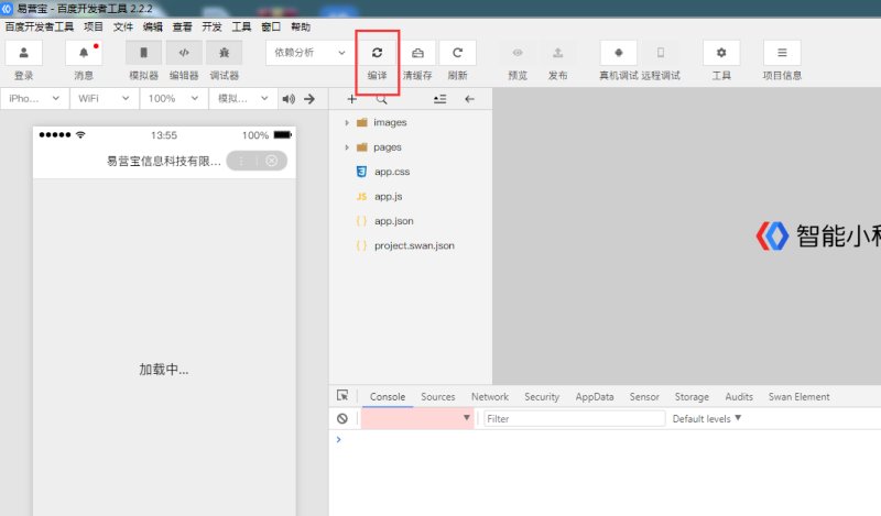 27,解压完成后,在开发者工具里点击 “编译”