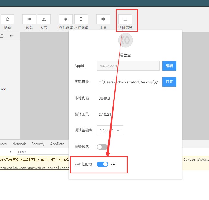 29,在项目信息里,再次检查APPID是否正确,和开启web化。