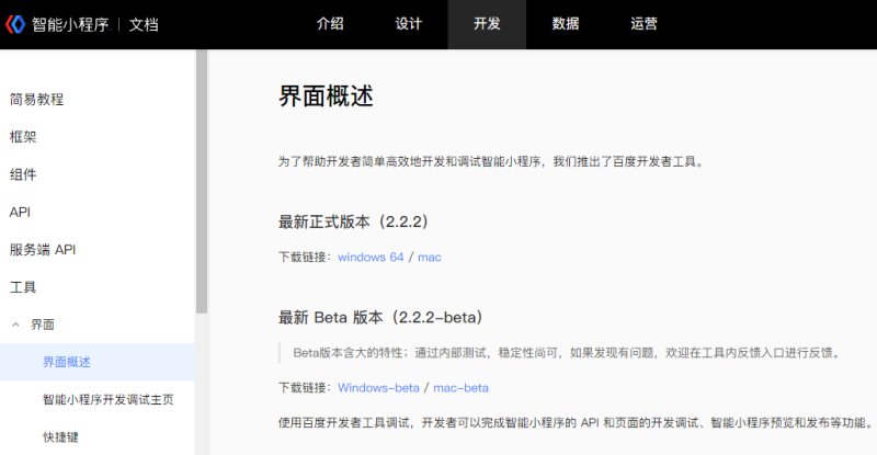 18,登录https://smartprogram.baidu.com/docs/develop/devtools/uplog/ 下载并安装百度小程序开发者工具