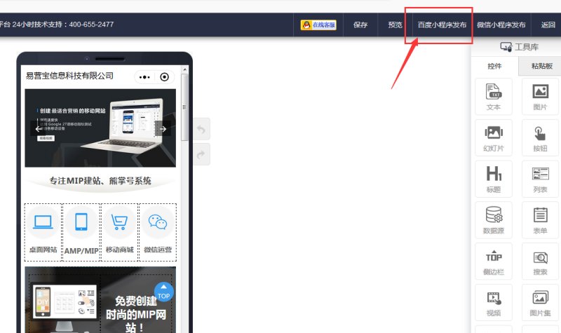 4,编辑页面的操作和MIP移动站的操作基本一致。做好后保存即可。