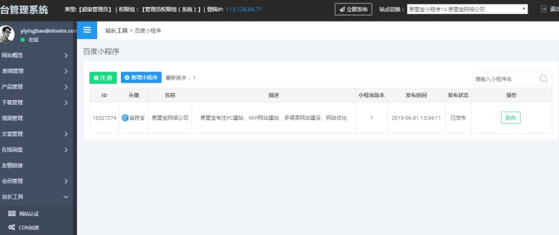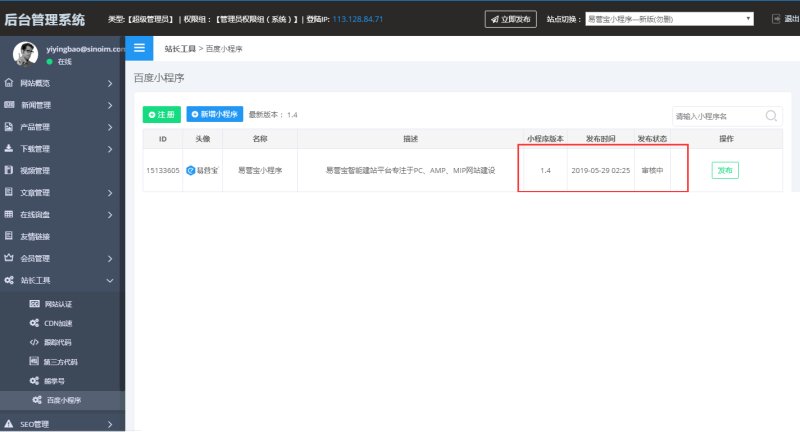 12, 发布完成后,进入管理后台,小程序列表里会显示版本、发布时间、发布状态。