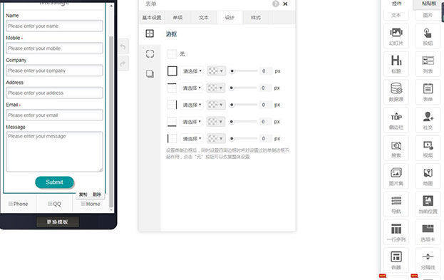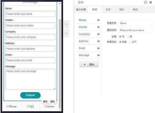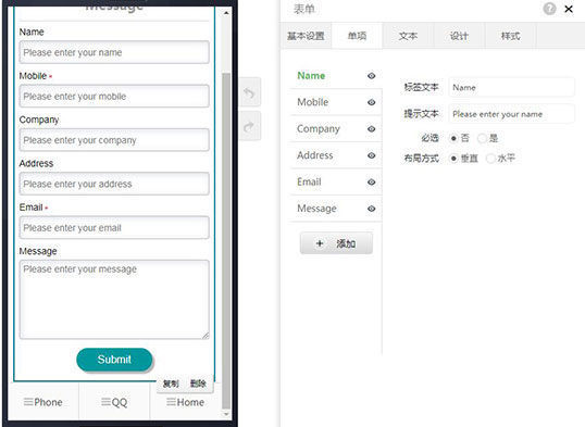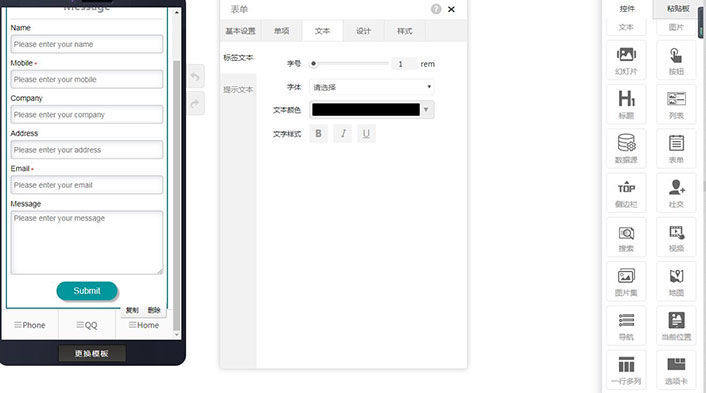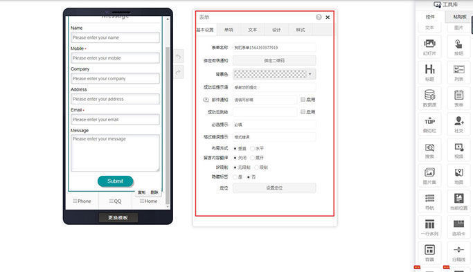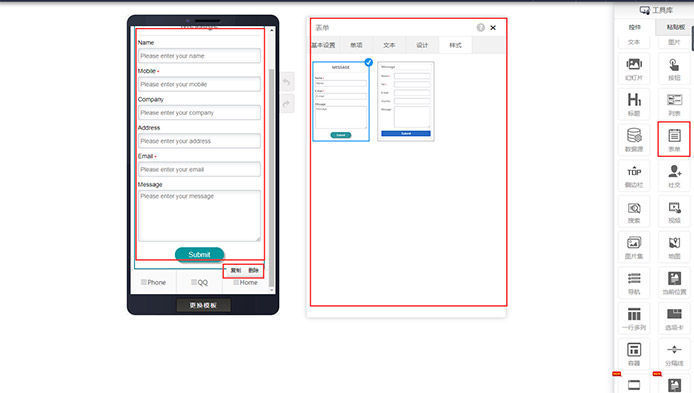 在页面编辑里拖入表单,默认显示选择样式,目前表单样式有两种选择,选择好之后开始编辑设置,表单也可以复制和删除。