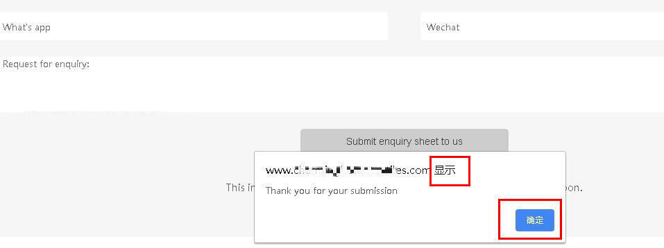 外贸网站会遇到这种情况:表单提交成功后的提示框上,有个“确定”和“显示”是中文的。