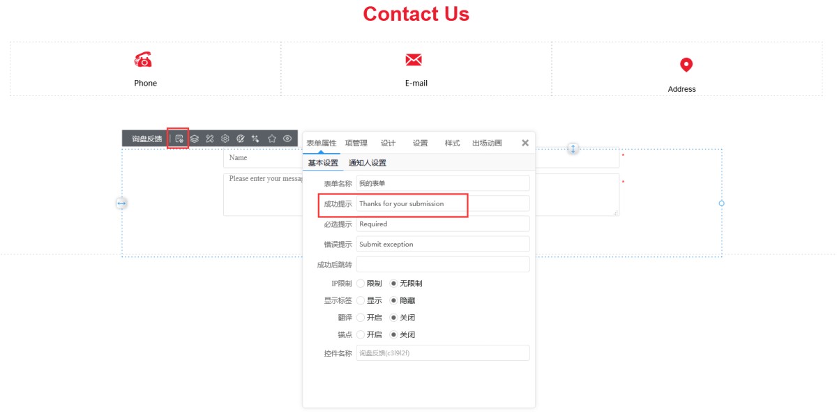 ▶ 英文网站的表单提交成功后的提示语是中文的,可以修改吗?