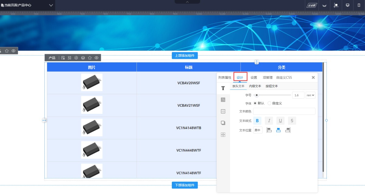 3,在设计里,可以修改文本样式、背景色、边框、圆角、阴影等样式。