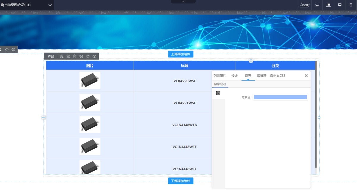表格列表是以表格的样式来展示产品信息,参数比较的产品常用这种列表展示,例如电子器件类的网站,样式下图所所示,: