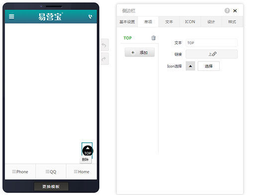 切换到单项设置,可以增加或删除,可以设置显示文本,添加链接,和Icon选择。
