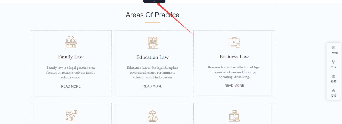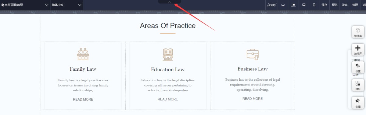 2,在UI编辑页面顶部的中间位置,有个向上的箭头,点击它就可以隐藏全部的系统功能按钮。