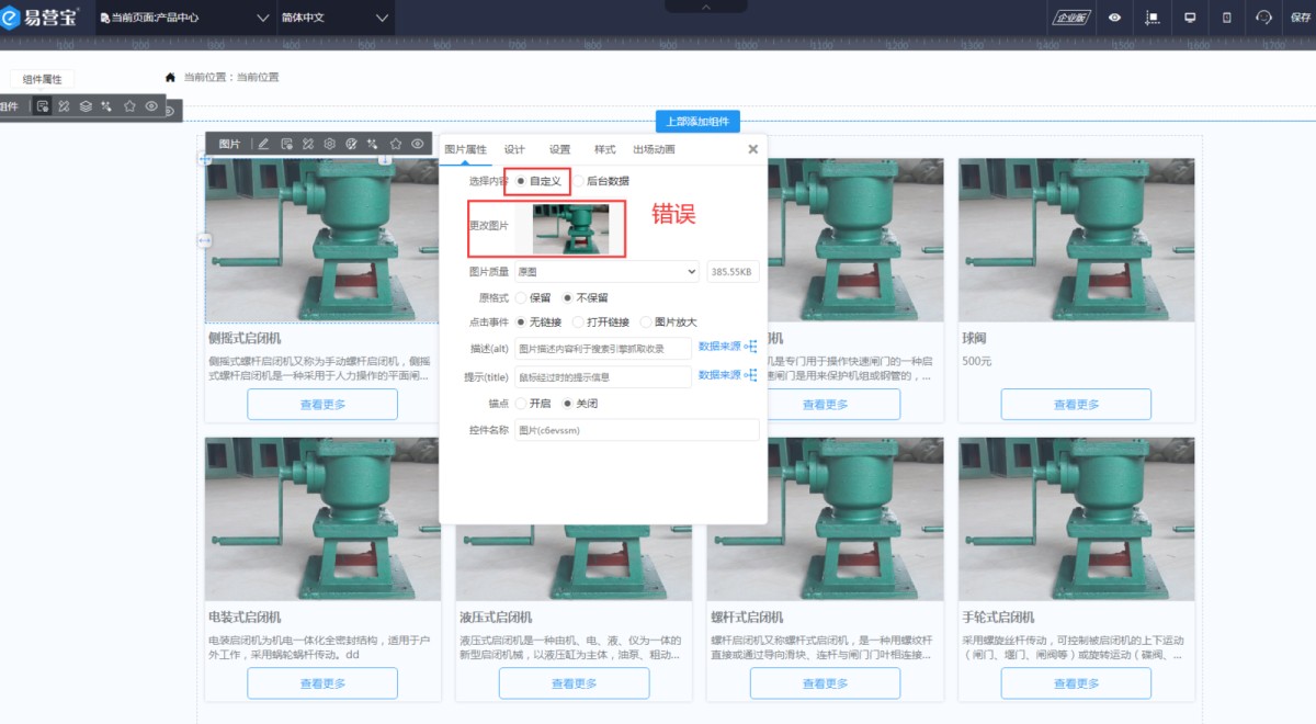 2,原因二:列表上的图片控件,选的后台数据,但是选择方式这里选的是指定,这样也会导致列表上所有产品都显示这一个图片。