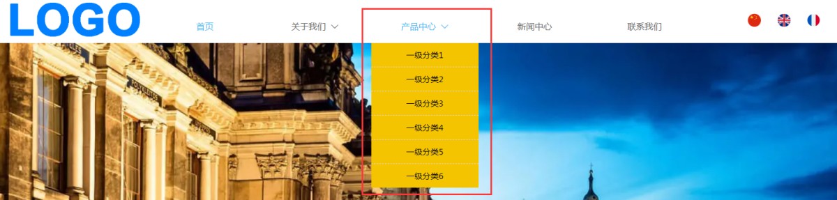 1,鼠标经过一级导航时展开次级导航,设置方式如下: