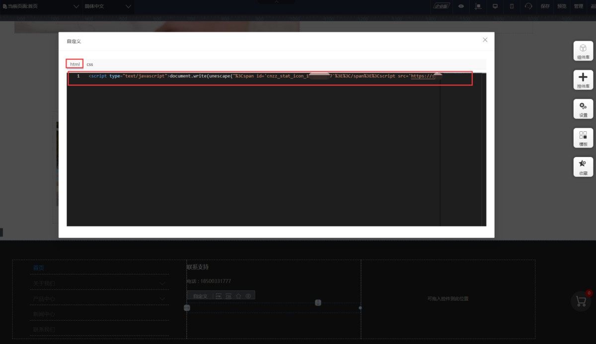 3,将cnzz的完整代码复制到html里即可。保存并发布。