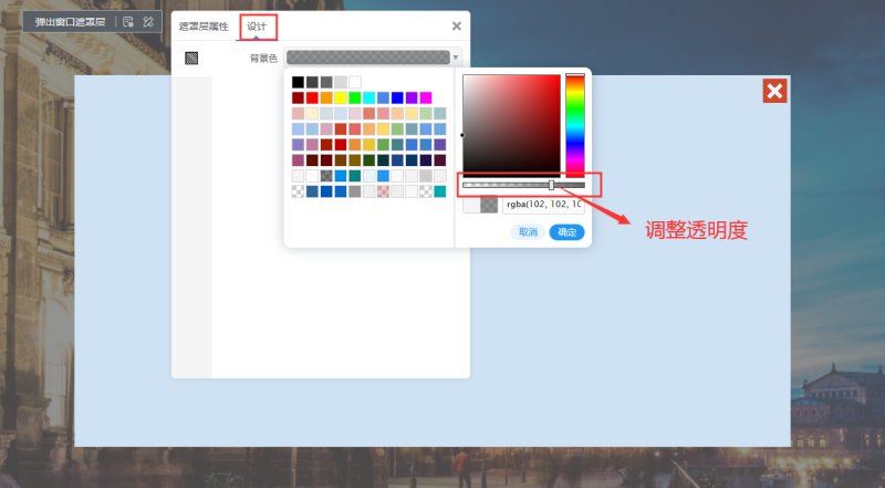11,在“设计”里,可以设置遮罩层的背景色和背景色的透明度。