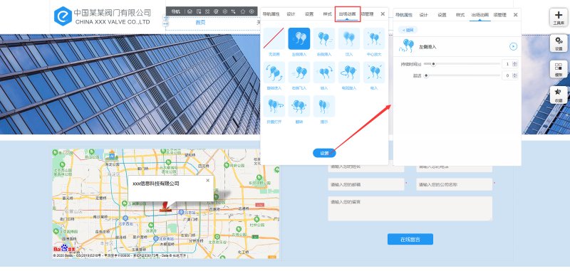 10,在“出场动画”里,我们提供12种动画效果,并且可以设置动画的持续时间和延迟时间。
