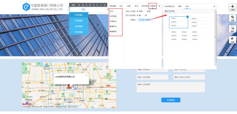 5,在次级属性设置里,可以设置次级导航的样式,以及鼠标经过和鼠标点击次级导航时的样式。