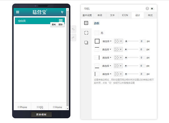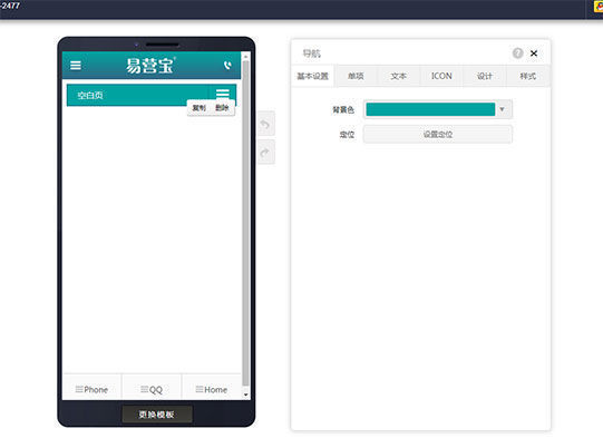切换到基本设置,可以设置导航的背景色,定位,设置里的选项根据选择的导航样式会有所变化。