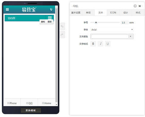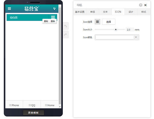 切换到ICON,可以选择Icon图标,Icon大小,Icon颜色,设置里的选项根据选择的导航样式会有所变化。