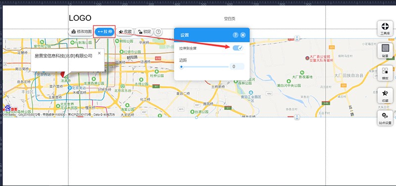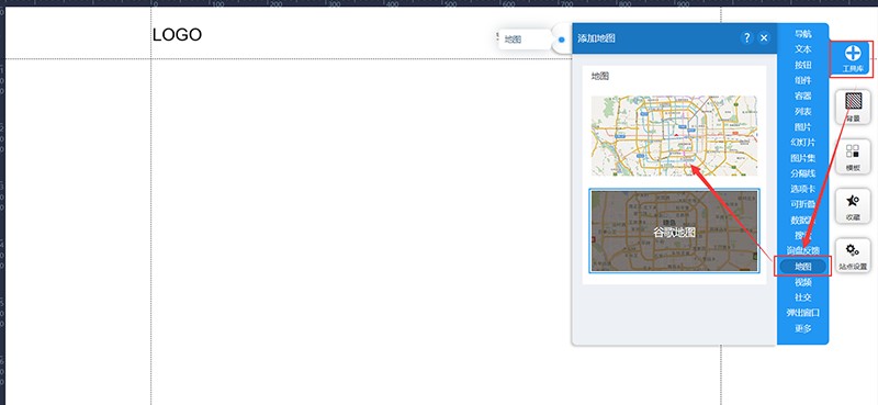 进入网站编辑,在工具库中找到“地图”,并拖拽到编辑页面。