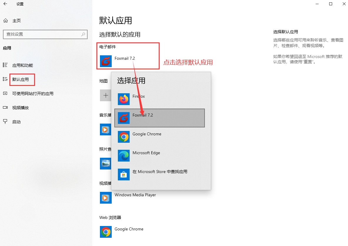 另外,电脑上安装邮件软件后,在电脑设置里,有个默认应用-电子邮件,这里要选择安装的邮件软件。如果没有设置默认应用,或者设置的默认应用为浏览器或其他,则网站上的邮件功能也是无法唤起的。