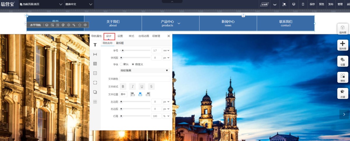 3,在导航属性-设计里,可以分别设置导航和副标题的文本样式。