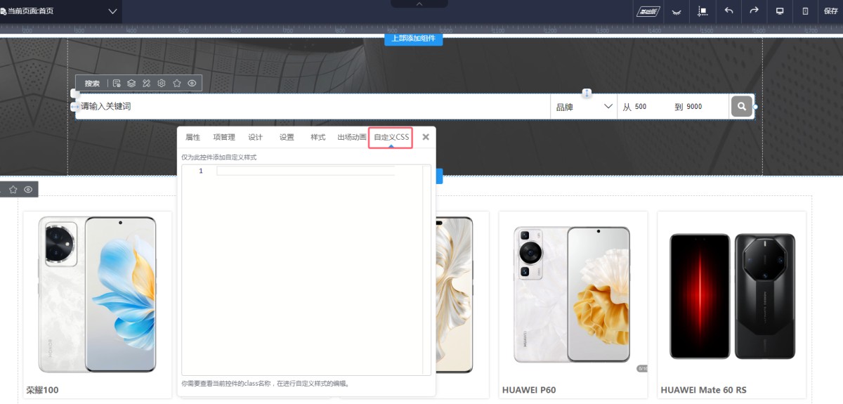 11,对于一些控件属性里设置不了的样式,可以在自定义CSS里添加代码来自定义样式。