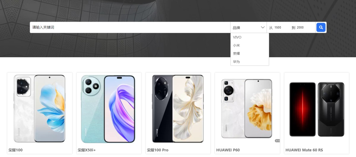 高级搜索是访客自己可以设定搜索范围,然后再输入关键词进行搜索,比如限定类别,价格等。如下图,访客在搜索产品时可以自己选择品牌,并设置价格范围。