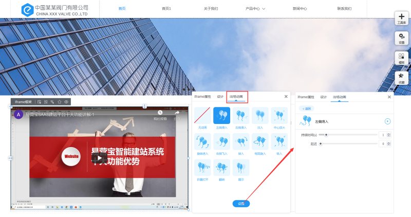 7,在控件属性-出场动画里,可以为控件设置动画效果。我们提供12种动画效果,并且可以设置动画的持续时间和延迟时间。