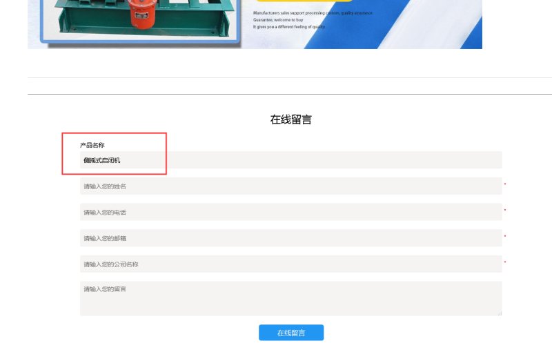 4,设置完成后,访客在详情页提交询盘时,留言板上默认是该页面的产品名称。产品名称客户也可以修改。