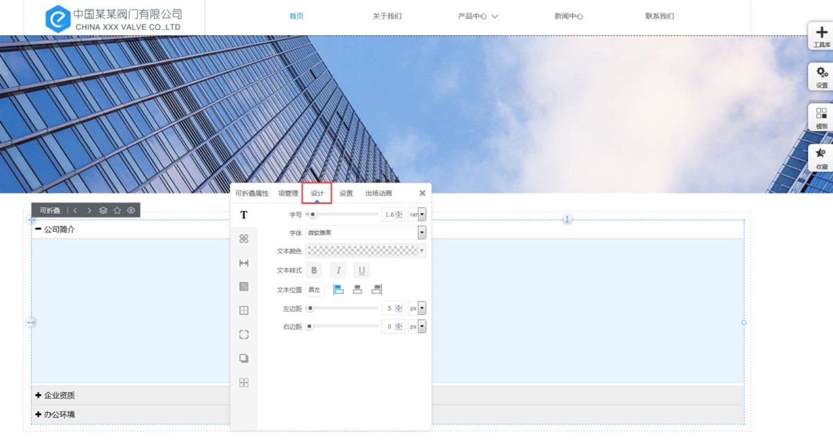 5,在“设计”里,可以修改每一项的字体样式、ICON样式、间距、背景色、边框、圆角、阴影、定位。