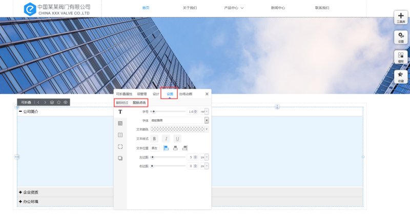6,在“设置”里,可以设置鼠标经过和鼠标点击标签项时,标签的文本样式、背景、边框、圆角、阴影。