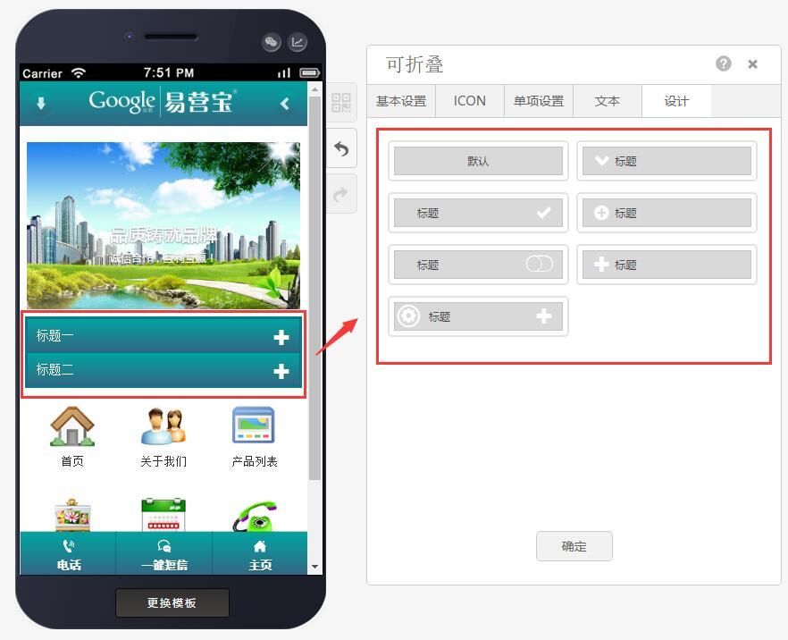 第二步:可根据自己的需求找到设计选项,选择可折叠样式(共有7种样式),如下图: