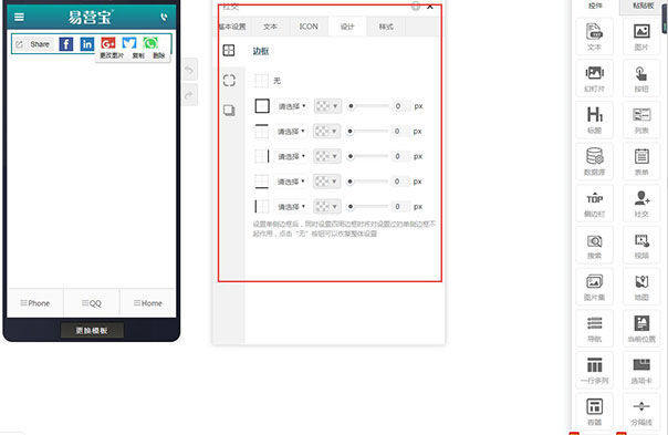 6,在设计里,可以设置选项卡的边框,阴影(阴影分为样式和高级,高级可以自定义设置阴影的方向,距离,大小,模糊程度和阴影颜色)。