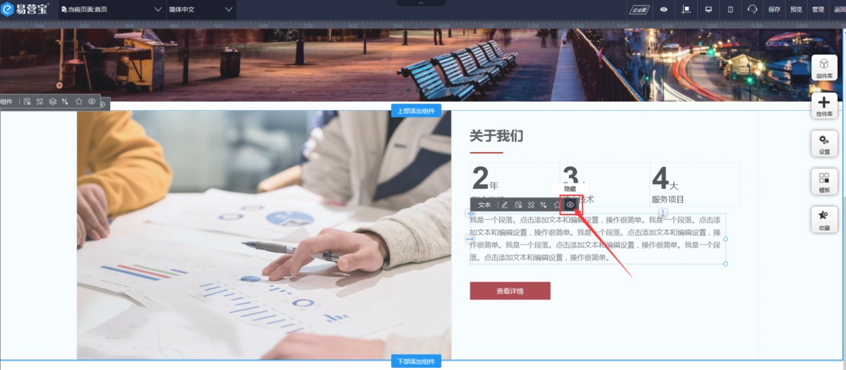 1,如果不想让某个控件在PC端显示,可以设置隐藏。点击控件,在控件属性里,最后一个图标就是隐藏控件的功能,点击即可隐藏该控件。