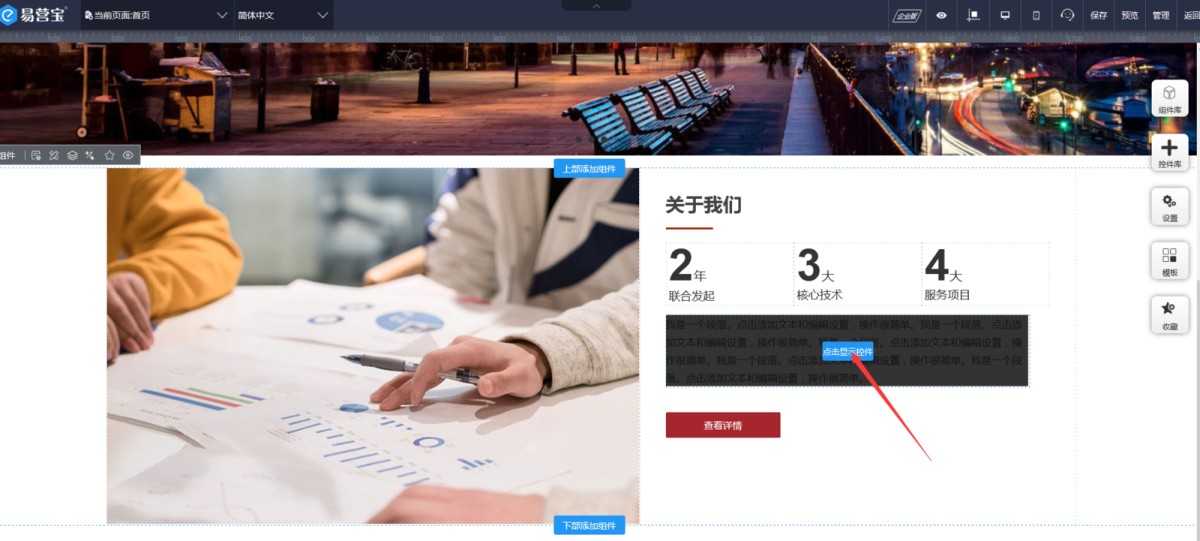 4,点击灰色状态的控件,会有个提示按钮“点击显示控件”,点击按钮就可以显示出控件了。