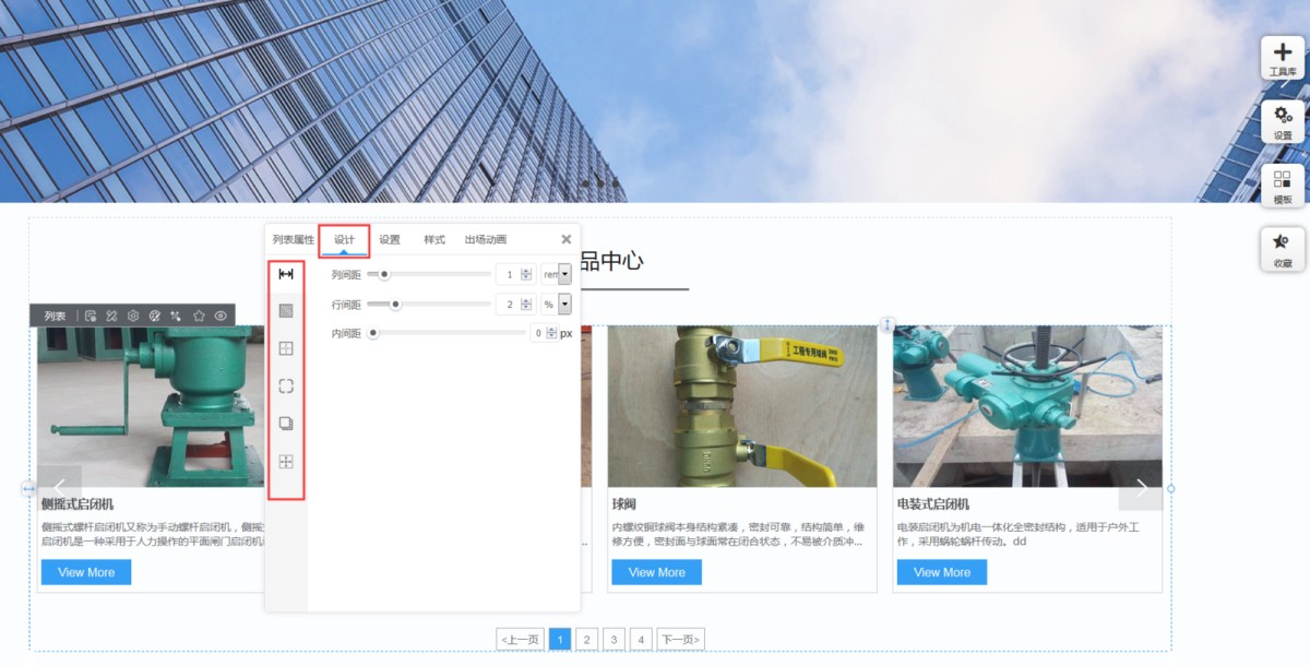 5,在设计里,可以设置列表的间距、阴影、边框、圆角和定位。